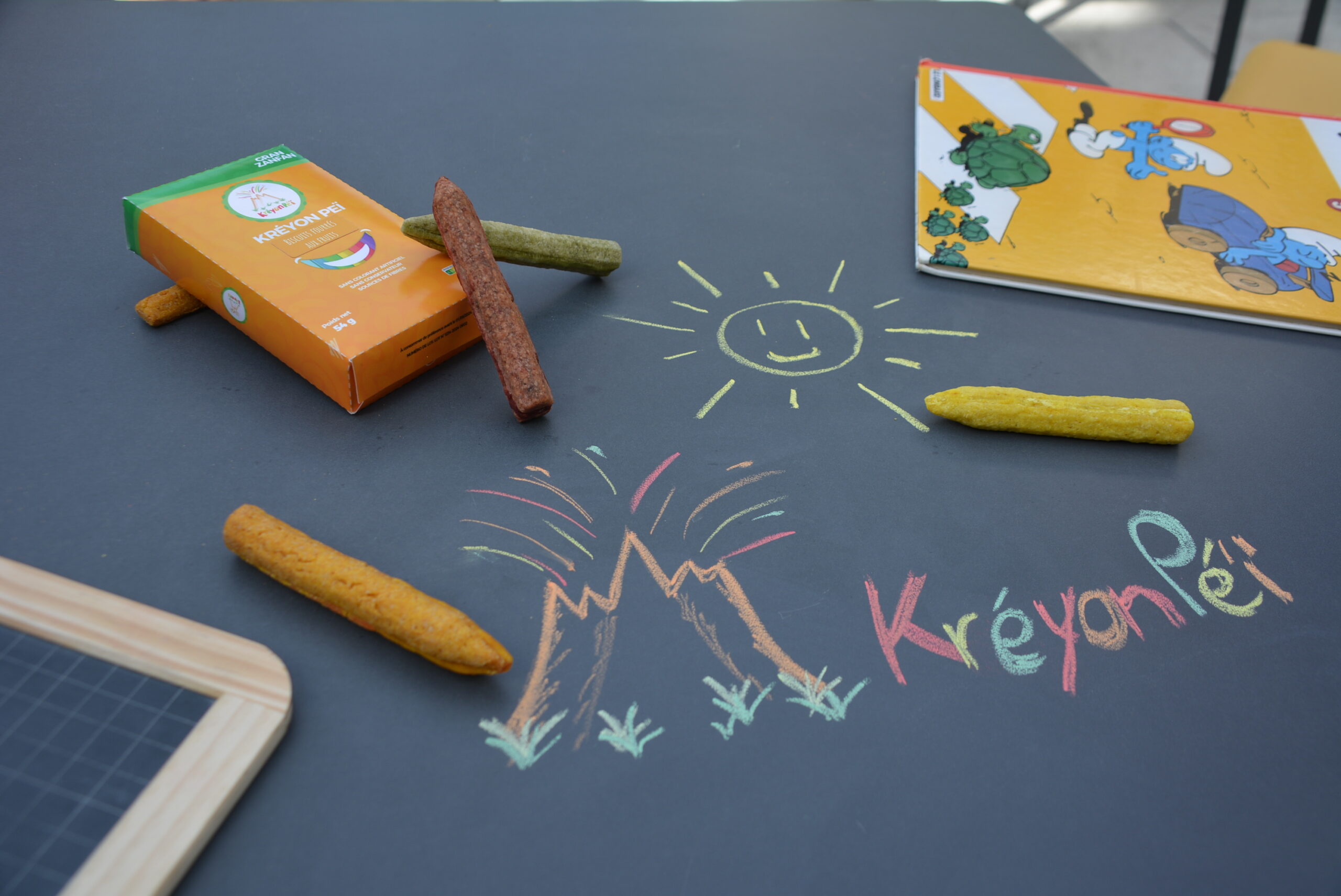 Leur innovation : “Kréyon Péï, un goûter ludique fourré aux fruits séchés pour conquérir le cœur de vos enfants”. Ces crayons comestibles ont été conçus à base de fruits emblématiques de la Réunion (mangue, ananas, banane, goyavier), sans conservateurs et contenant bien moins de sucre que les autres produits du marché. C’est une solution originale et ludique spécialement conçue pour l’éducation au goût des enfants. Ce délice allie plaisir et exotisme grâce à des ingrédients naturels et locaux issus de La Réunion dans un crayon coloré pour éveiller les papilles.