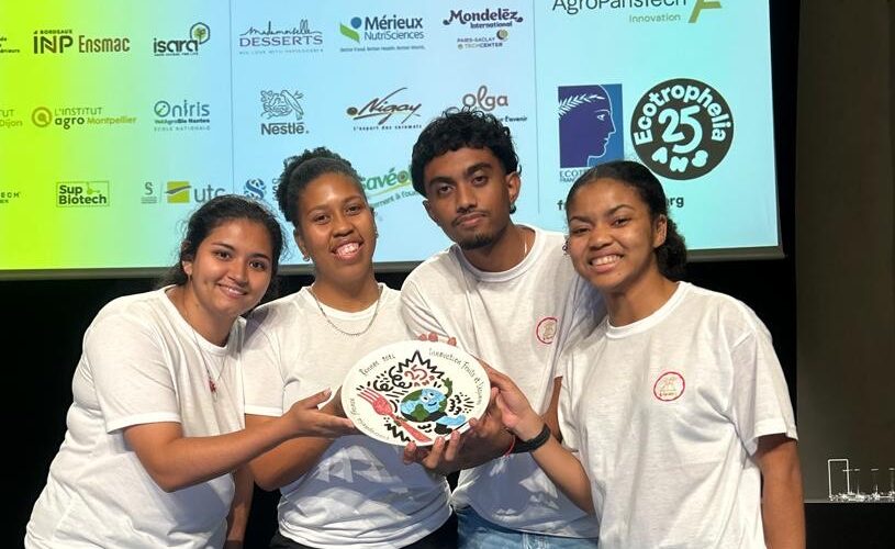 Quatre étudiants de l’ESIROI, (école d’Ingénieurs de l’Université de La Réunion) Laika, Honorine, Torenika et Chain, étudiants en 3ème année de spécialité agroalimentaire ont remporté le prix Innovation Fruits et Légumes lors de la 25ème édition du concours Ecotrophelia France 2025 dont la phase finale s’est déroulée à Rennes.